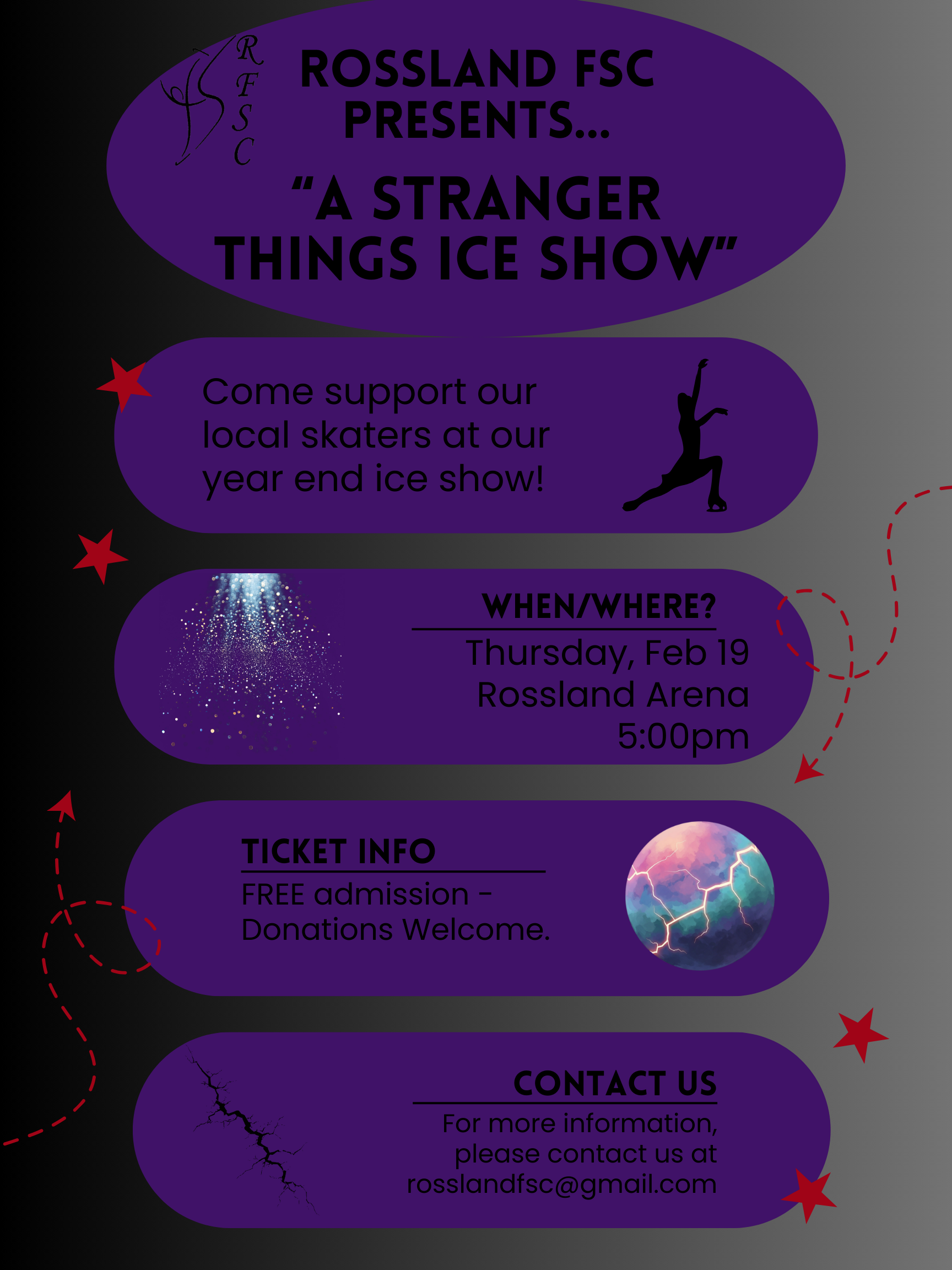 We are the Rossland Figure Skating Club, a non-profit society operated by a volunteer Board of Directors at the Rossland Arena.